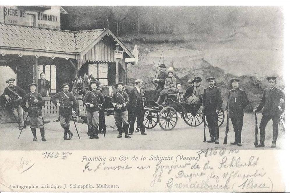 Carte postale, « Frontière au col de la Schlucht (Vosges) », Photographie artistique J. Schoepflin, Mulhouse, début XXe siècle 01.jpg